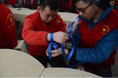 虽然他们沉浸在自己的世界,但却是最需要关爱的群体。活动现场,择思达斯义工团队为孩子们系上象征着关爱自闭症的蓝丝带,代表着全社会向博爱残疾人中心的孩子们传递着鼓励、关怀和呵护。我们相信:爱,不分时间和地点,它是温暖儿童身心的阳光,更是滋润儿童心灵的甘露。每一个关注,都是一份爱的力量,希望有更多的爱心人士能将这份爱心传递下去!